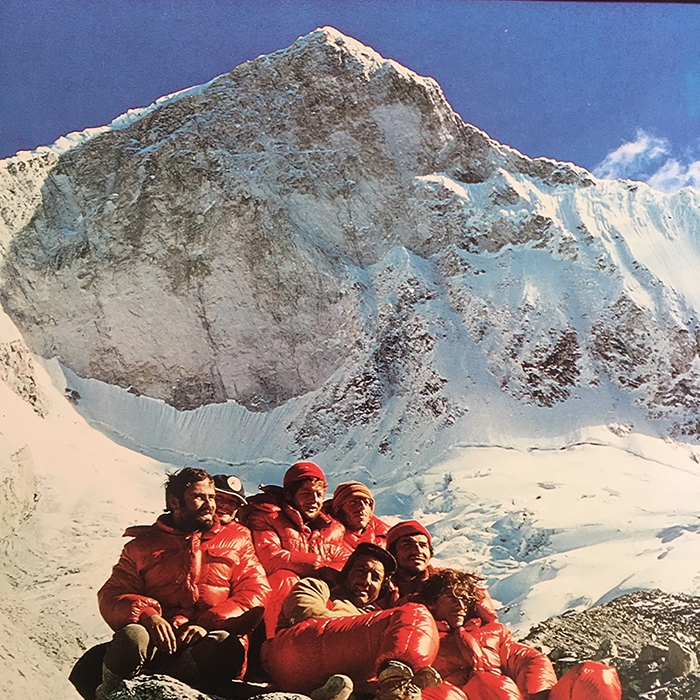 L'ensemble de la forme évoque la montagne, célébrant les origines de la marque. Le double trait représente la protection qu’apporte les vêtements, tandis que l'aspect épuré s'accorde avec le style structuré et élégant des pièces proposées.
